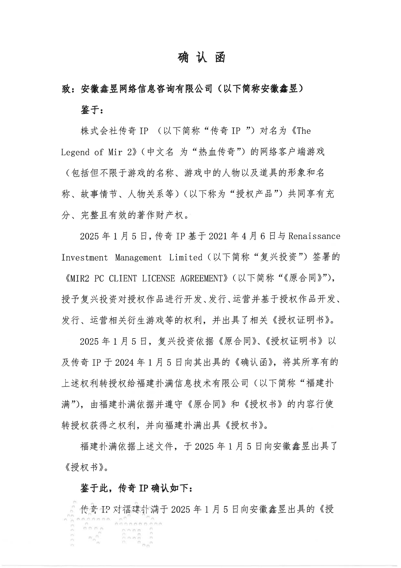 關(guān)于對《The Legend of Mir 2》(熱血傳奇) 衍生品游戲直播的嚴(yán)正聲明